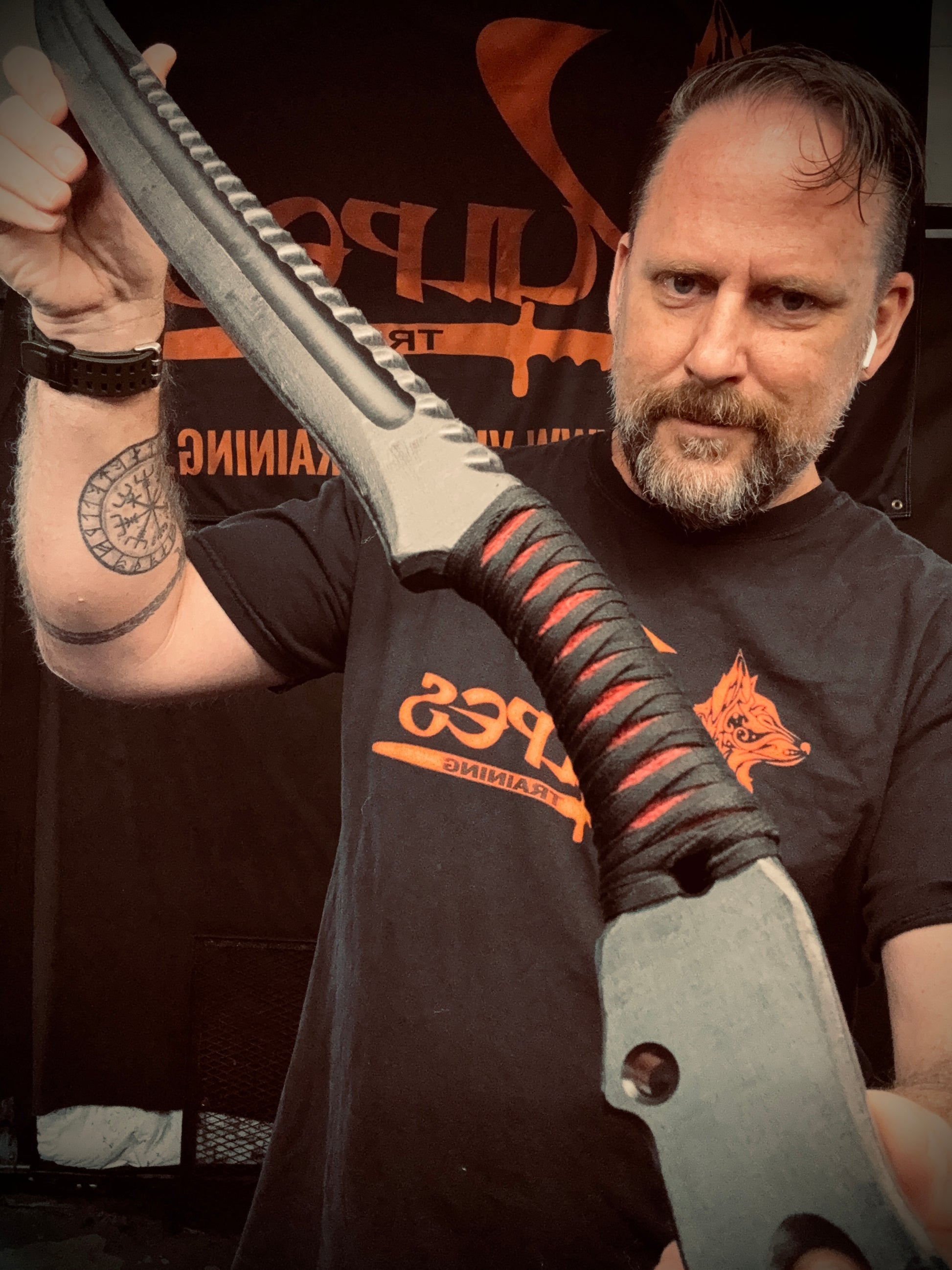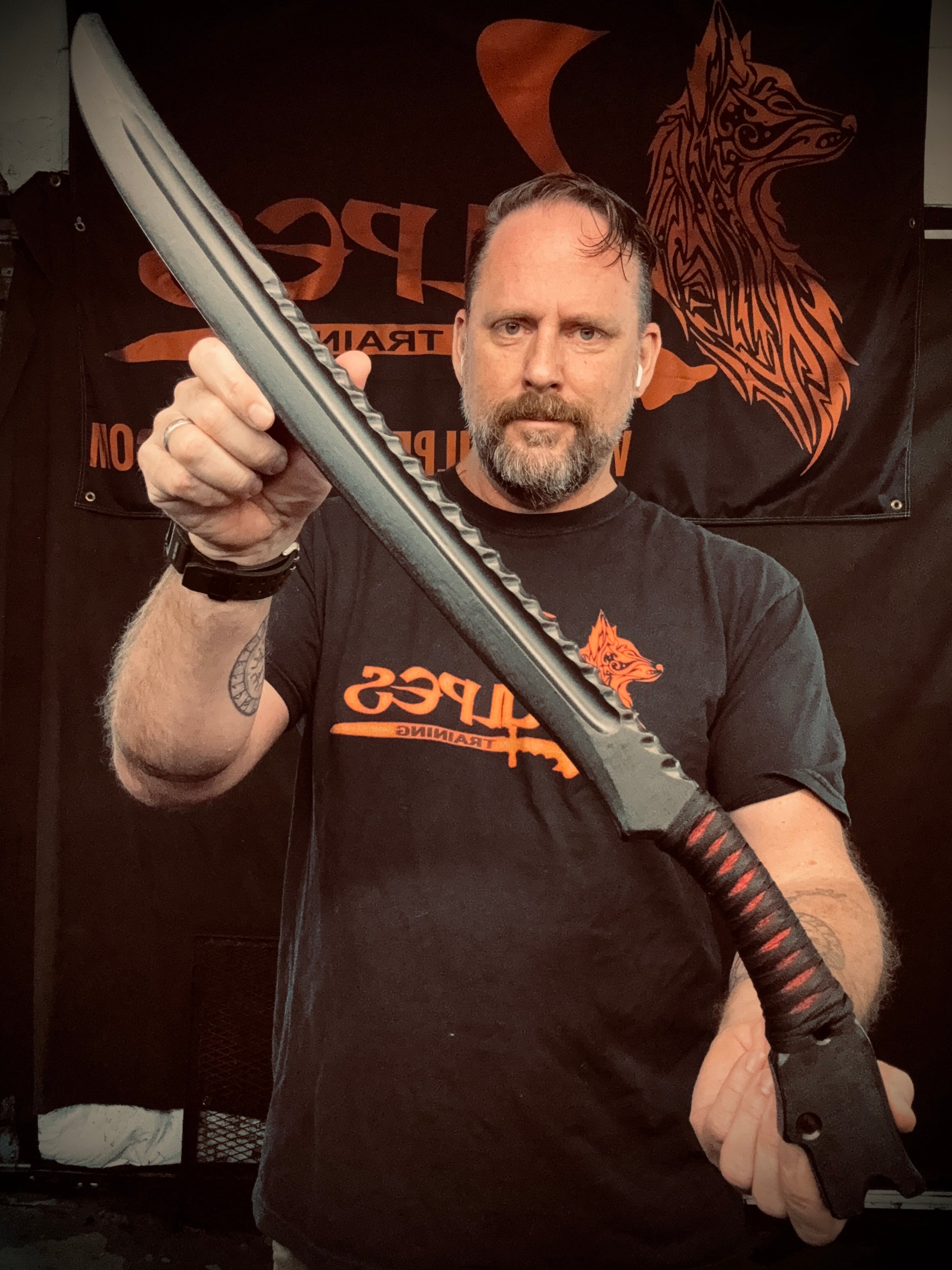 Handcrafted from 3/4” thick HDPE polymer. This sansibar sword trainer swings like a dream. The 20” hand ground blade is matched with a flame treated jute wrapped handle. It is then covered with a Tsukamaki style wrap and is saturated with marine grade resin to create a grippy and permanent handle wrap. Blade and dragons head pommel features our hand textured Dragon Hide finish. Overall length of 29”. Weighs 16oz.
