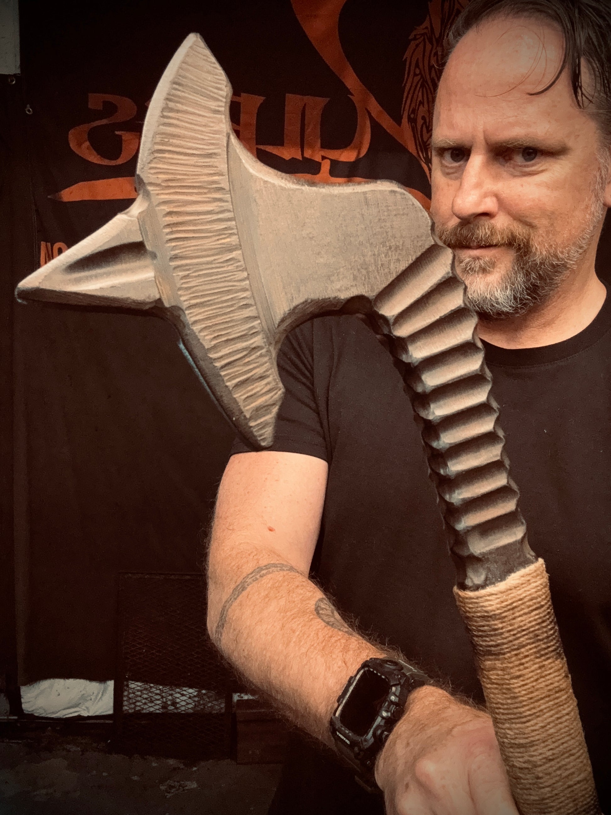 If you don’t mind sand in your shoes , then your the right person for this Gaffi War Club ! A functional war club handcrafted from 3/4” thick HDPE polymer. The head and shaft is hand ground and textured a rusty patina finish. The handle is wrapped in flame treated jute and and an Tsukamaki style that is infused with marine grade resin to create a permanent, grippy phenolic handle wrap. 33 1/2” overall length. Weighs 1 lb 9oz.