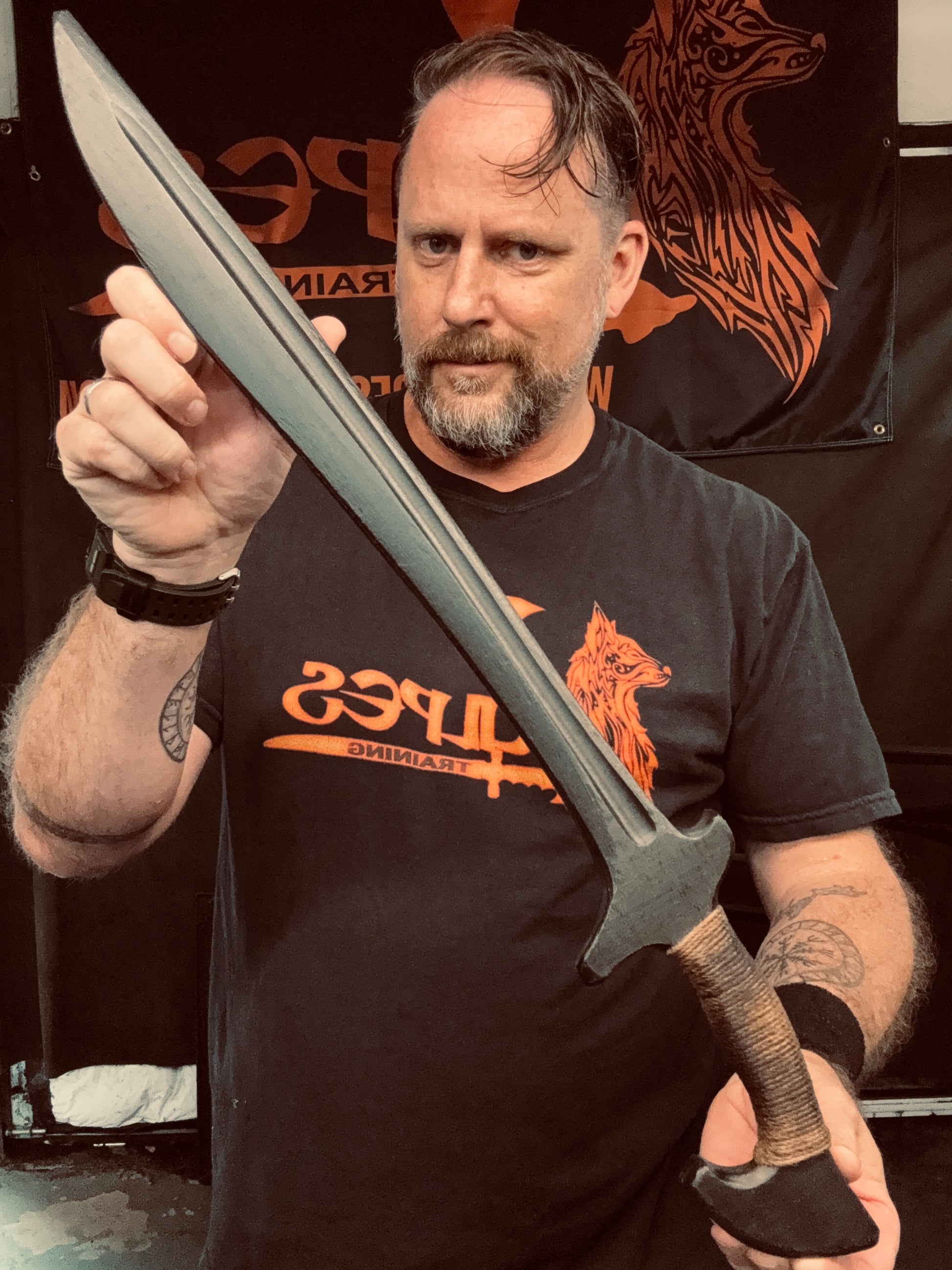 The 19.5” hand ground blade is matched with a flame treated jute wrapped handle. The jute is infused with marine grade resin to create a grippy and permanent , phenolic handle wrap. Blade and pommel feature our hand textured wood grain finish. 26” overall length. Weighs 14.2 oz.