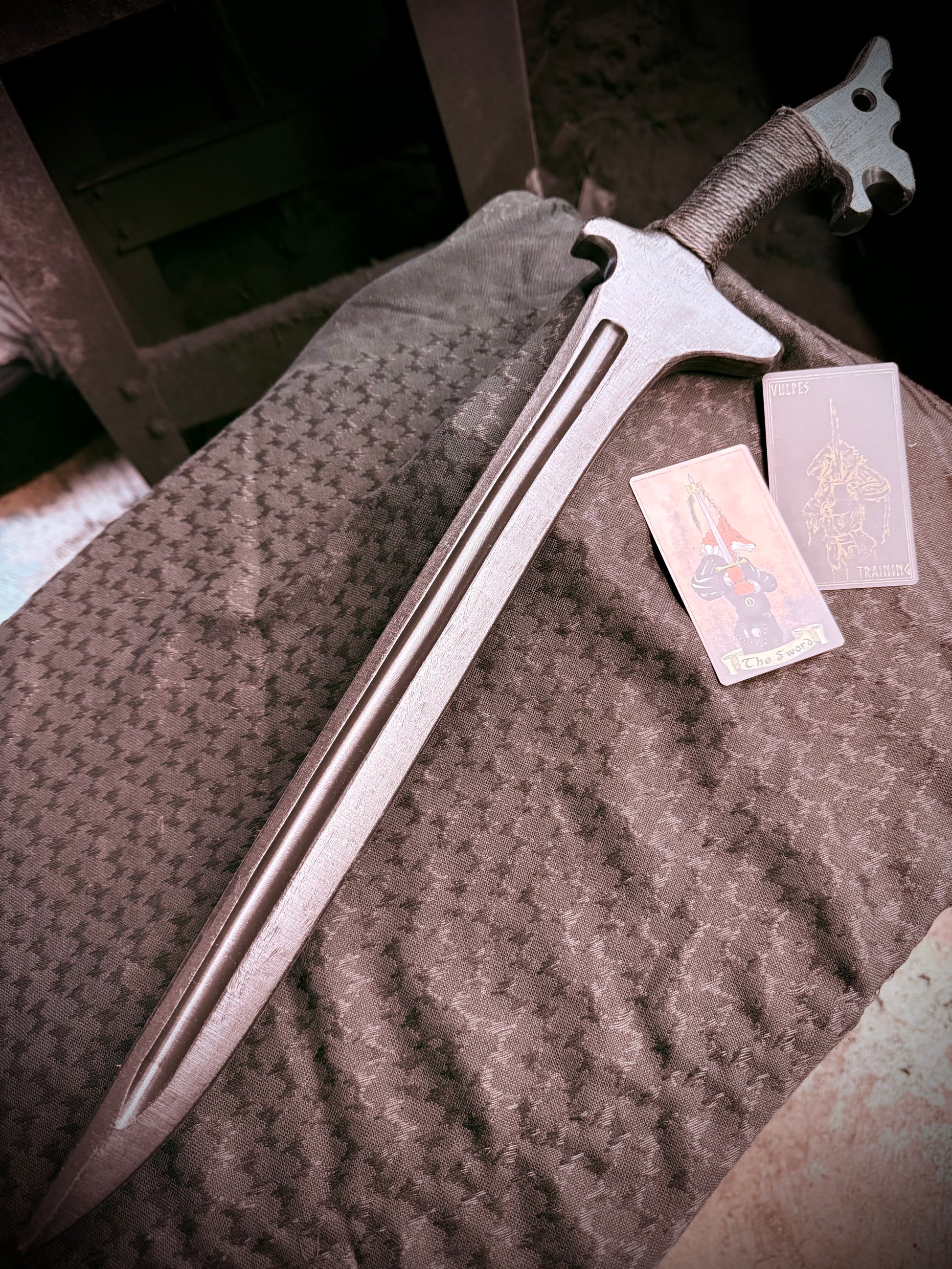 A modern spin on the traditional Dahong Palay. Handcrafted from 3/4” thick HDPE polymer. The 17” hand ground blade is matched with a flame treated jute wrapped handle. The jute is infused with marine grade resin to create a grippy and permanent , phenolic handle wrap. Blade and pommel feature our hand textured wood grain finish. 25” overall length. Weighs 14 oz.