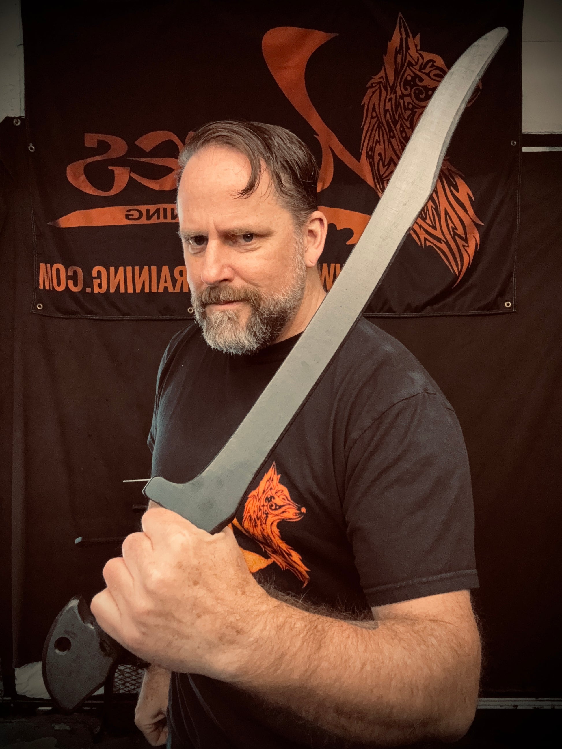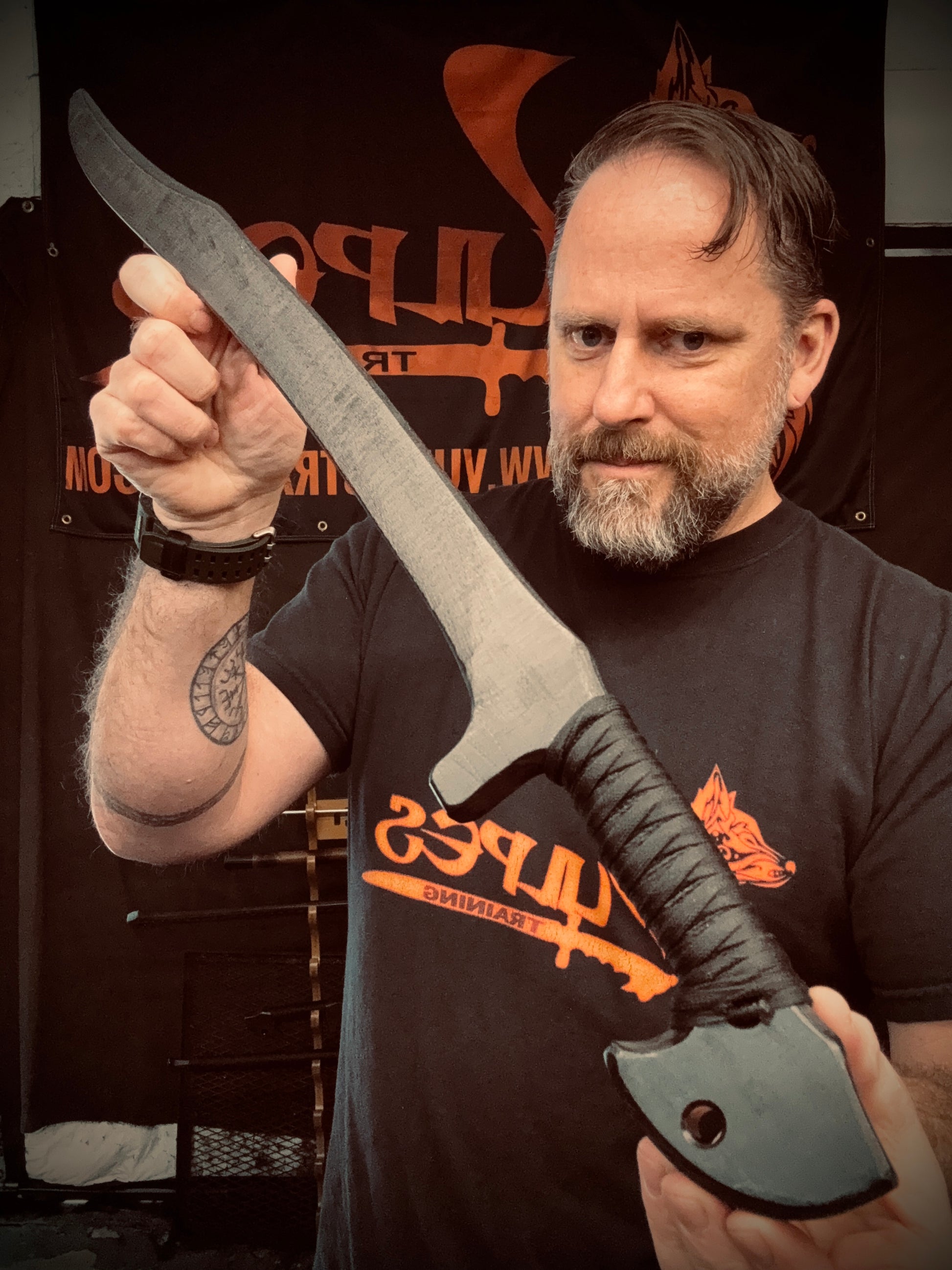 A modern styled Talibong trainer ready for action. 27” overall length with a 20” blade ( blade length can be adjusted on request). Weighs 14 oz. This trainer is handcrafted from 3/4” thick HDPE polymer. The handle is wrapped with layer of flame treated resin saturated jute . It is then covered with a Tsukamaki style wrap and is saturated with marine grade resin to create a grippy and permanent handle wrap.