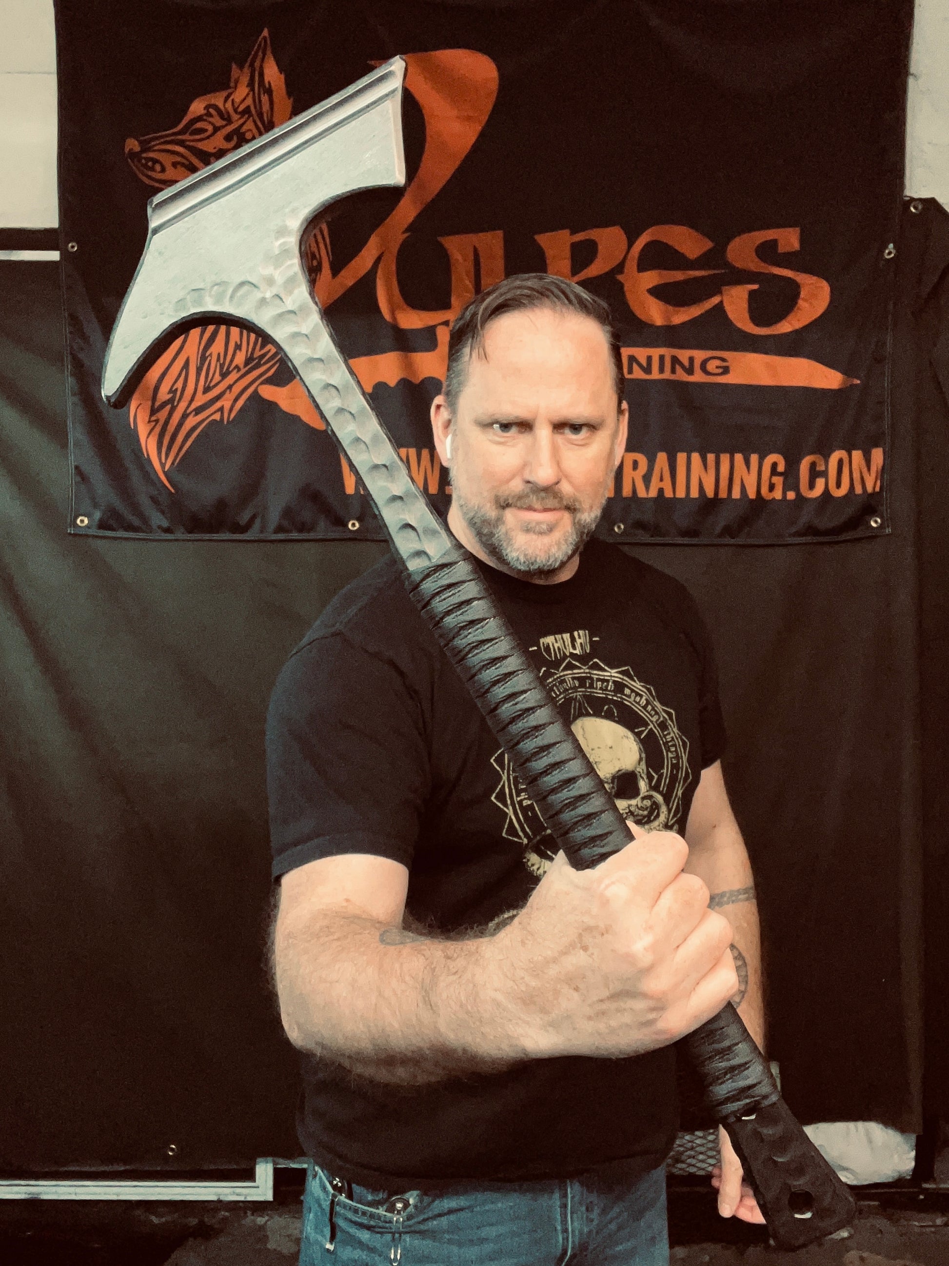 These days fighting Trolls can be a daily hazard. Might as well be prepared with the proper tools and training. The Ban Hammer may be just what you need. Handcrafted from 3/4” thick HDPE polymer. A crushing hammer face matched with a terrifying claw . At 27” long and weighing 1 lb 9oz , it’s a great battle field training tool or the perfect addition to your cosplay. Blade and pommel feature our hand textured wood grain finish and Dragon Hide texture. The handle is wrapped with layer of flame treated jute . It is then covered with a Tsukamaki style wrap and is saturated with marine grade resin to create a grippy and permanent handle wrap.